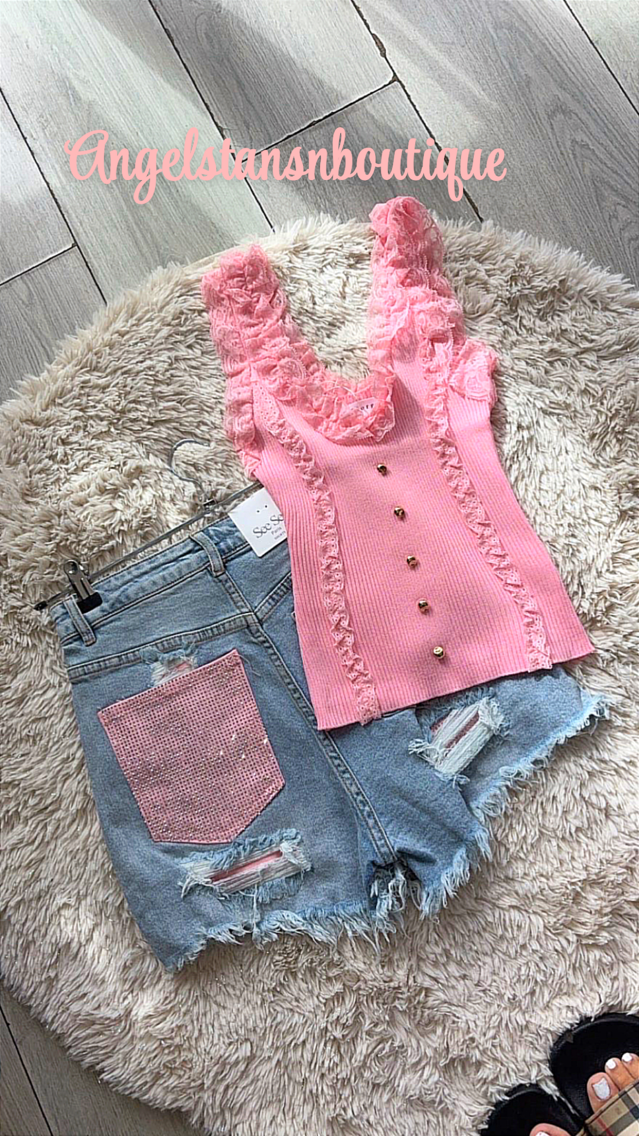 pink crystal pocket denim shorts